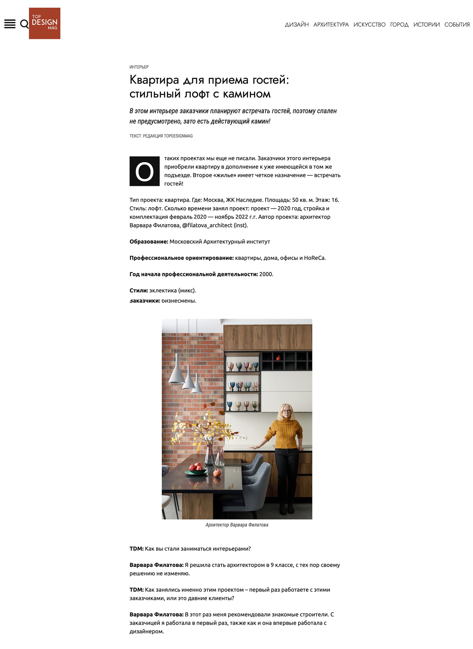 Top Design Mag, «Квартира для приёма гостей: стильный лофт с камином» 03/08/2023